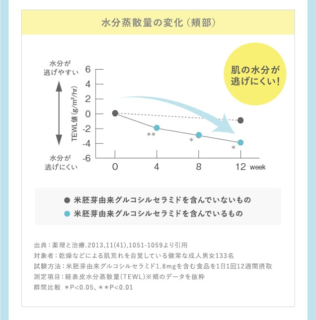 每天服用高純度的「米胚芽萃取葡萄糖基神經醯胺」後,發現到了肌膚的水分流失量逐漸減少了。。。